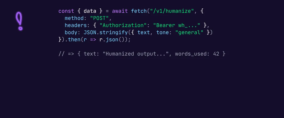 The WriteHuman API is here. It lets developers, content teams, and agencies integrate humanization into their apps and workflows with flexible pricing and 40+ languages.